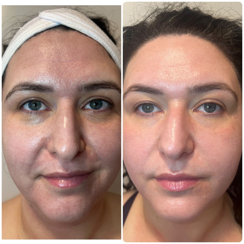 CO2 Fractional Laser Treatment - Before and 90 days after - Improvement in tone, texture, softening of fine lines, wrinkles, scars, and skin tightening.